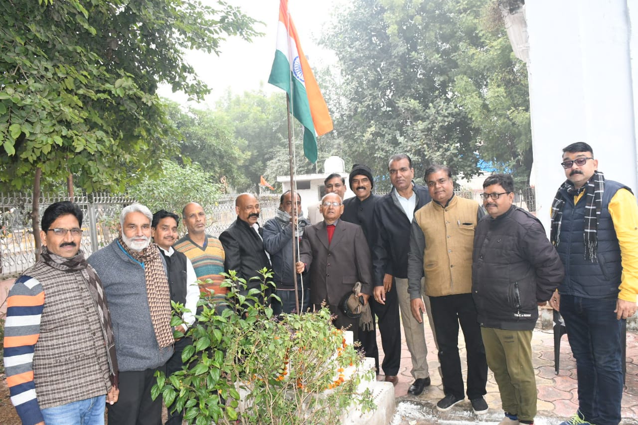 प्रेस क्लब परिसर में किया मां सरस्वती का पूजन और ध्वजारोहण
