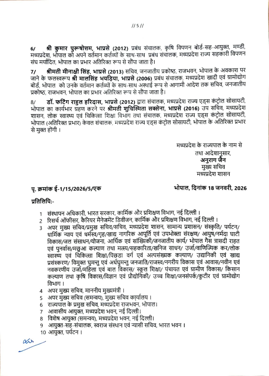 मध्यप्रदेश में बड़ा प्रशासनिक फेरबदल: 26 IAS अधिकारियों के ट्रांसफर