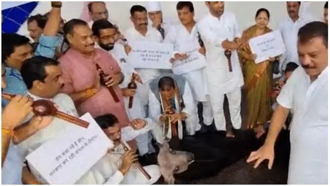 मध्य प्रदेश विधानसभा के मानसून सत्र की कार्यवाही मंगलवार को दूसरे दिन शुरू हुई। विधानसभा के बाहर कांग्रेस विधायकों ने बीन बजा कर विरोध प्रदर्शन किय